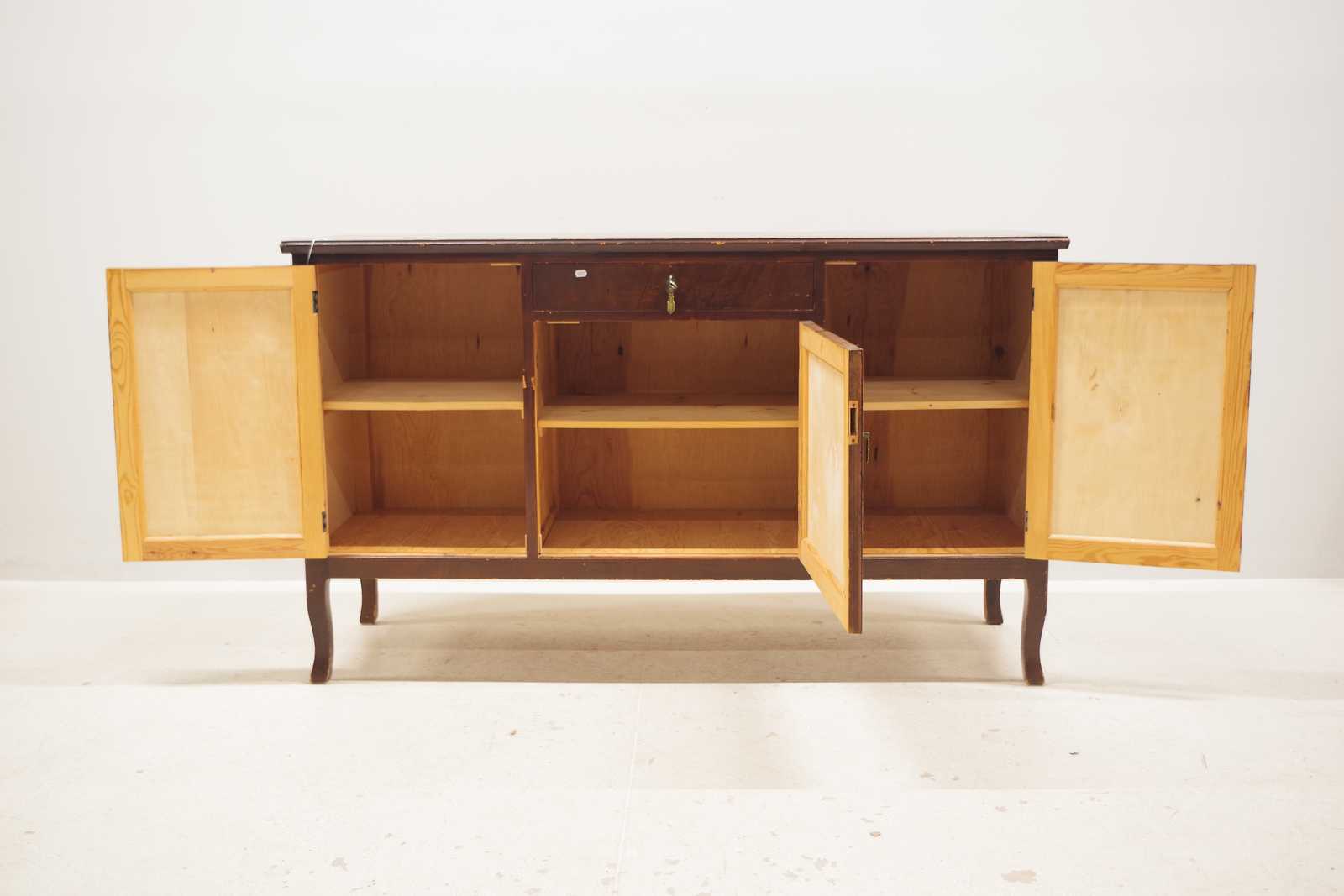 SIDEBOARD, 1900-talets första hälft., H: 89x 150x 50cm (bruksslitage, en lucka saknar lås) Avslutas 2026-03-19 19:30:00