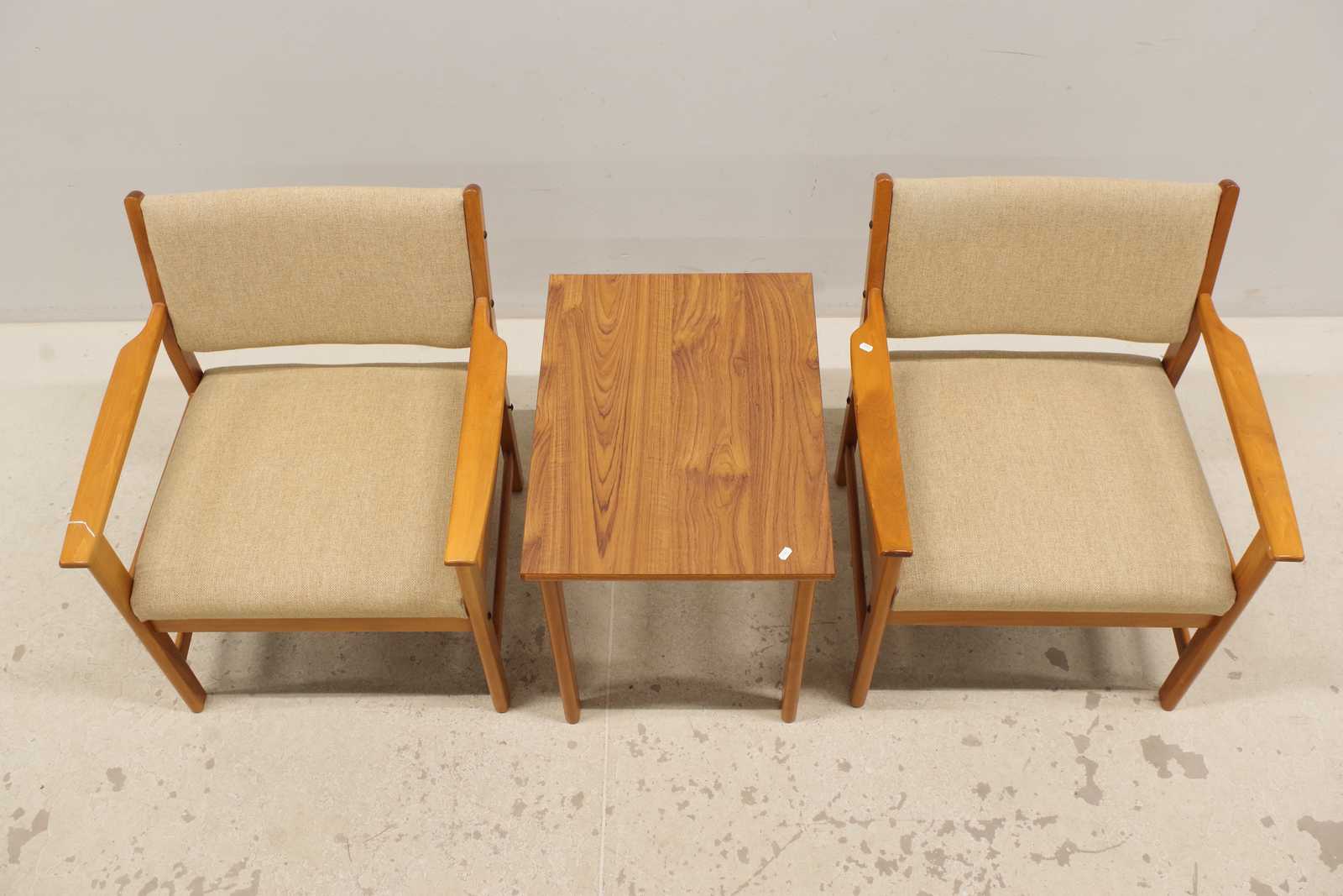SITTGRUPP, 2st karmstolar & bord, H: 55x 45x 60cm (doft av nikotin, en sits lös)