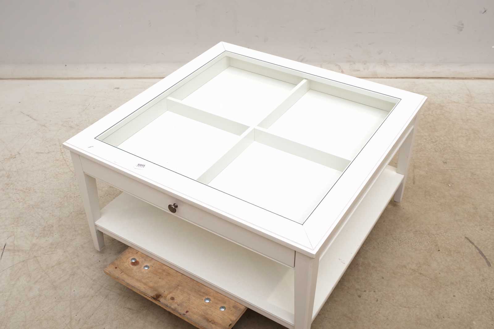 SOFFBORD MED LÅDA, modern tillverkning, trä/glas. H: 51cm B: 93x93cm. Avslutas 2026-03-03 19:39:00