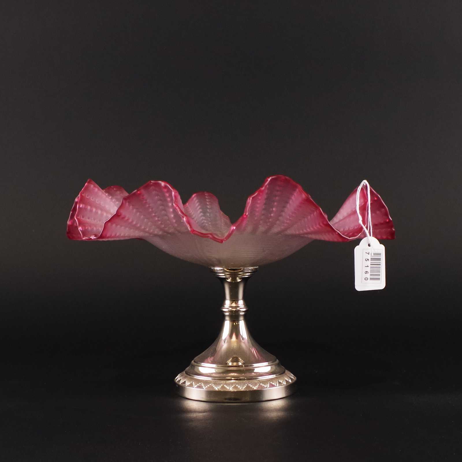 SKÅL på fot, glas & vitmetall, veckade kanter. 1900 talets första hälft. D:29cm. H:19cm.