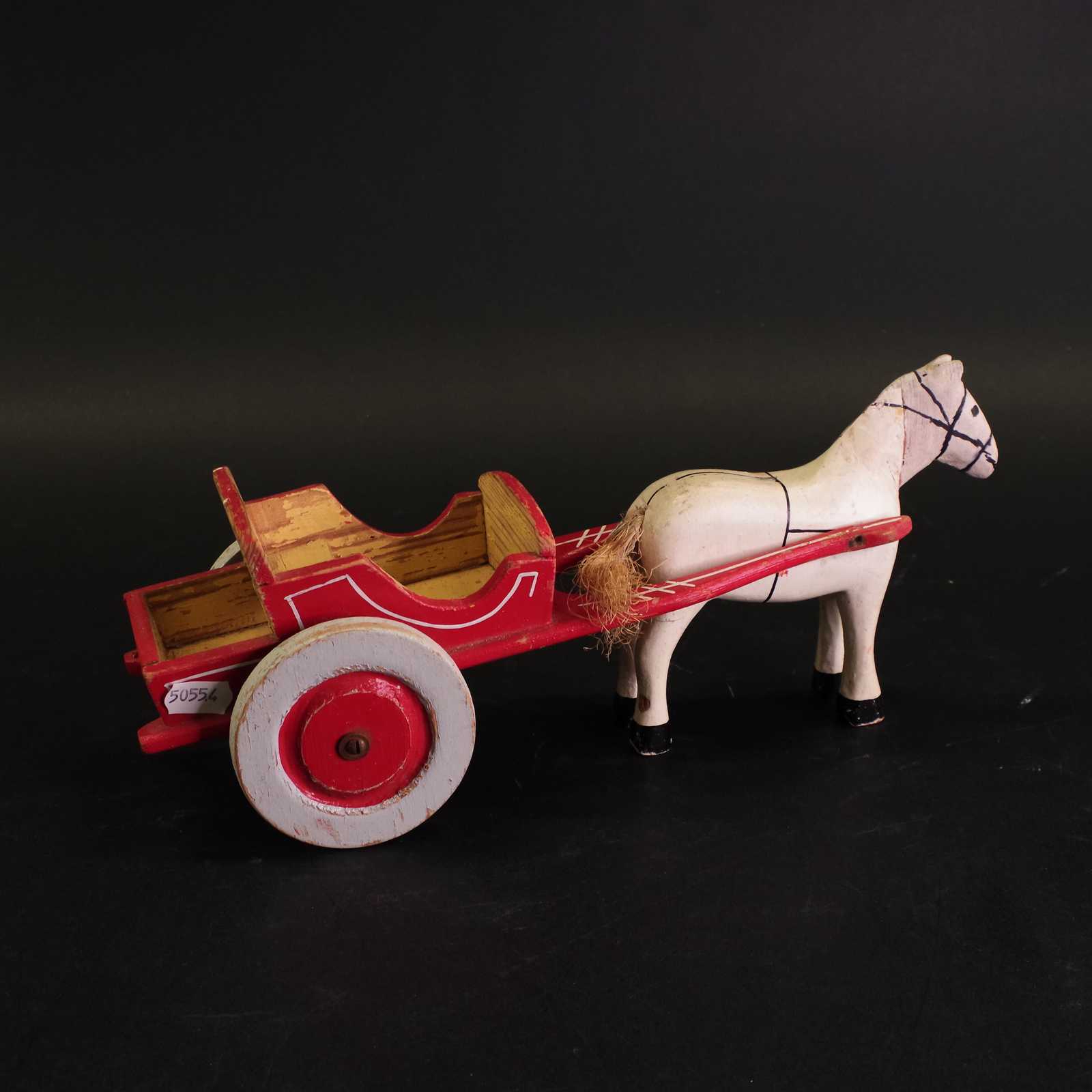 HÄST och VAGN i trä, äldre L:32 cm