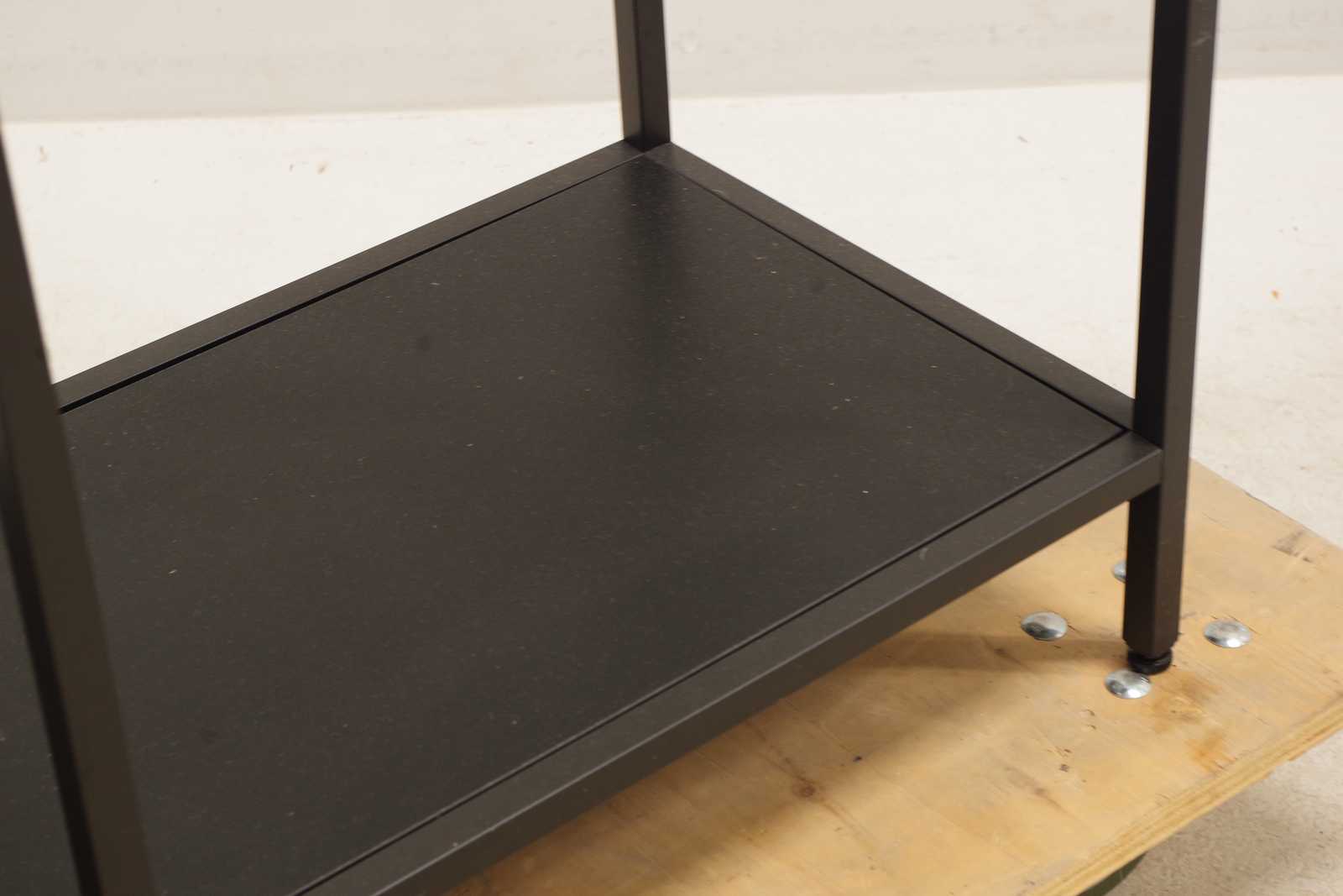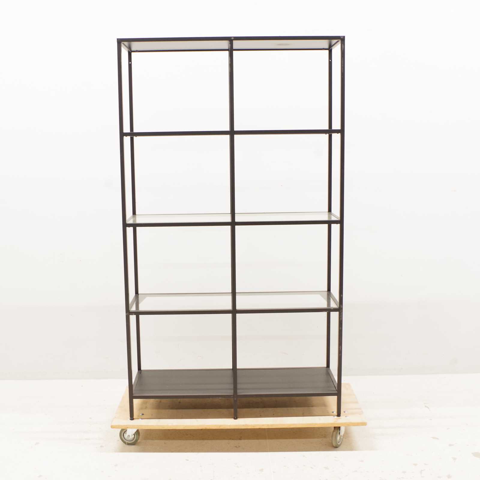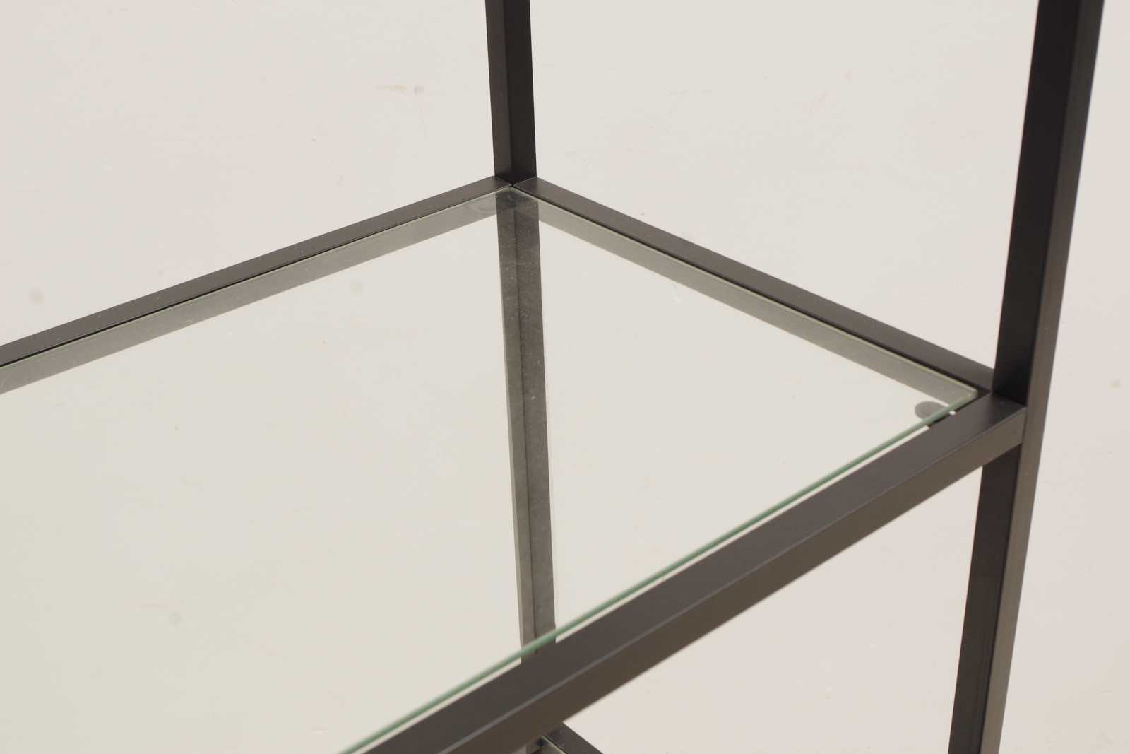HYLLA i metall, med hyllplan i glas, samtida tillverkning. H:175x 100x 35cm