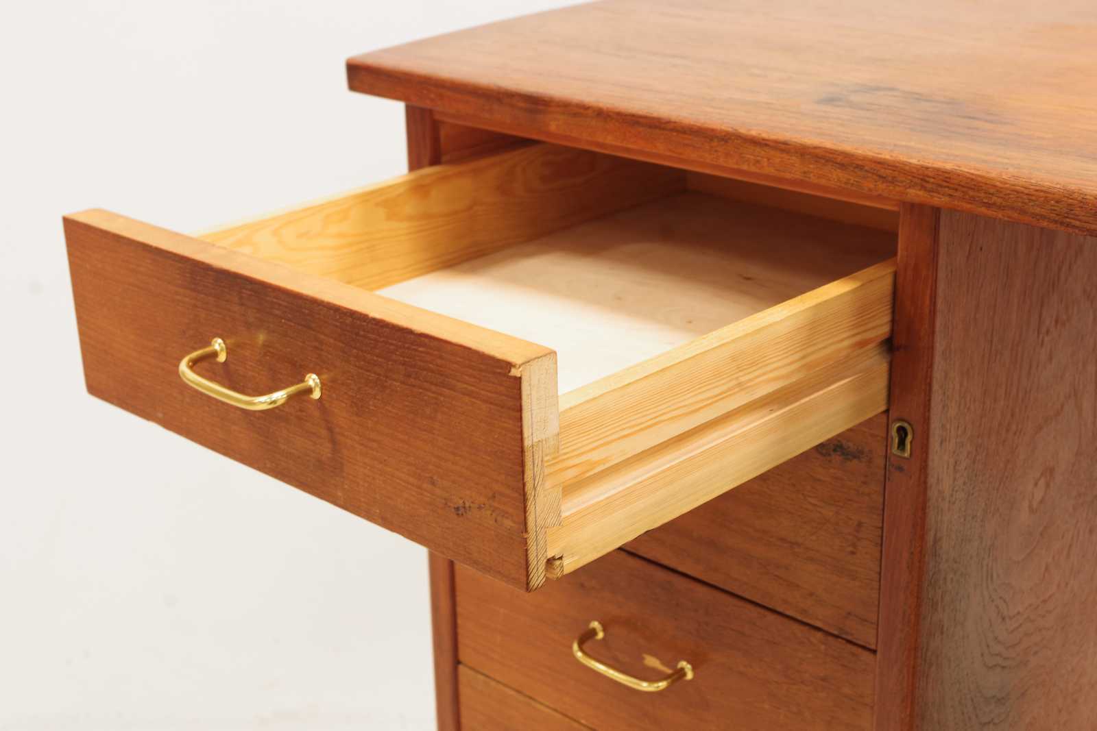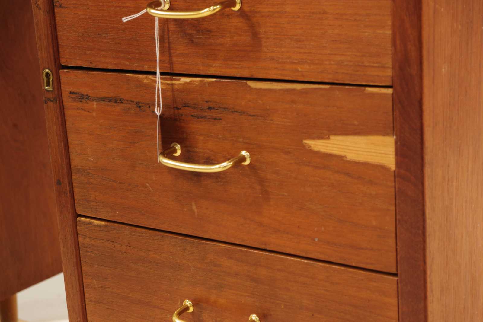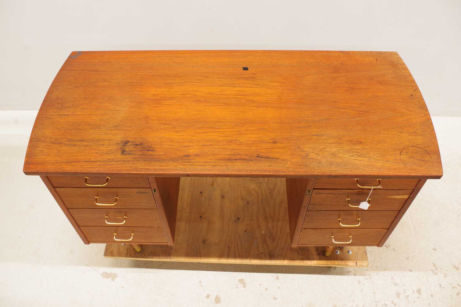 SKRIVBORD, fanerat i teak, 1900-talets andra hälft, H: 75x 132x 58cm (slitage, fanerskador) Avslutas 2026-02-10 19:02:00