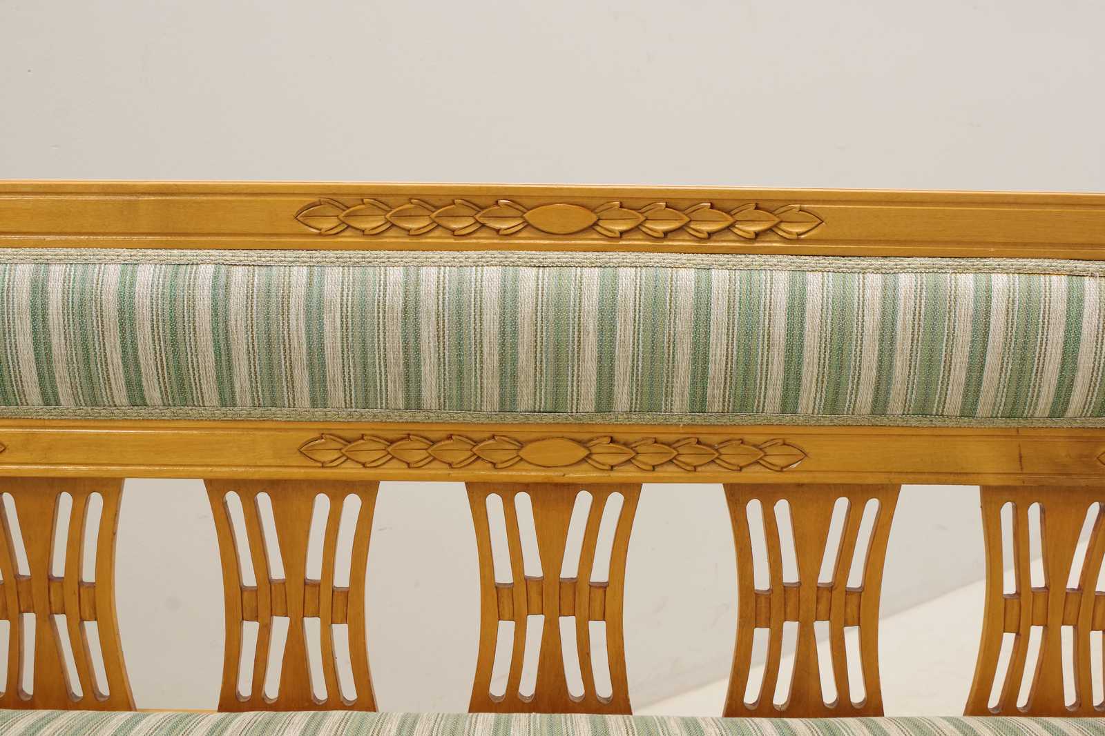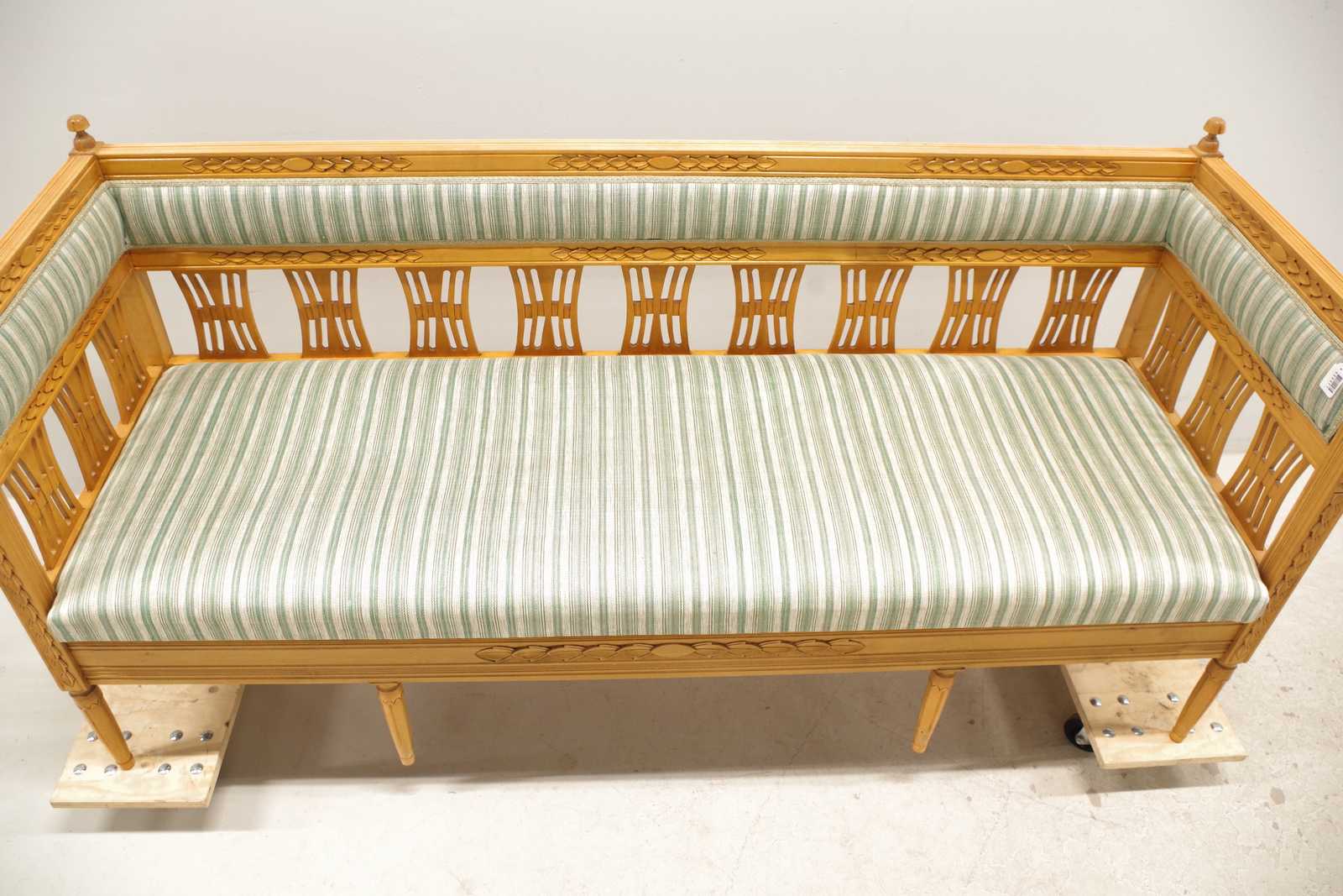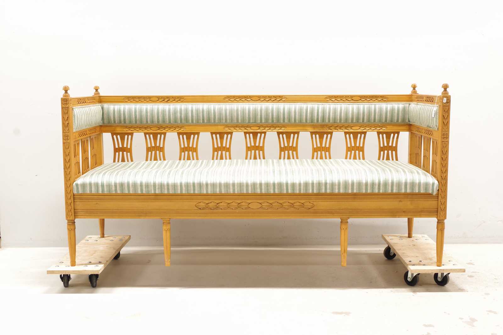 SOFFA Roy Johansson, Arvika, tillskriven, osignerad, Gustaviansk stil, skuren dekor, 1900 talets andra hälft, möbeltyg medföljer. B:175cm Avslutas 2026-03-09 19:04:00