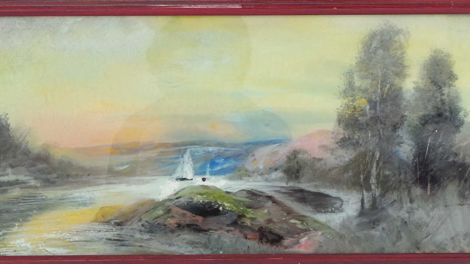 TAVLA Osignerad, olja på glas, äldre. 60x34cm (bruksslitage)