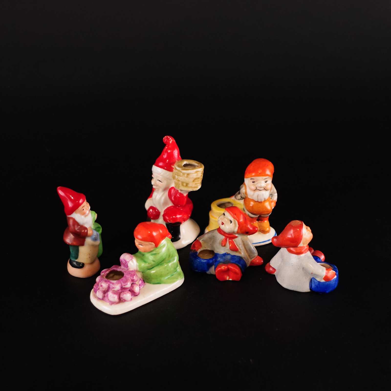TOMTELJUSSTAKAR 6st äldre, bl.a. porslin. H:8,5cm största.