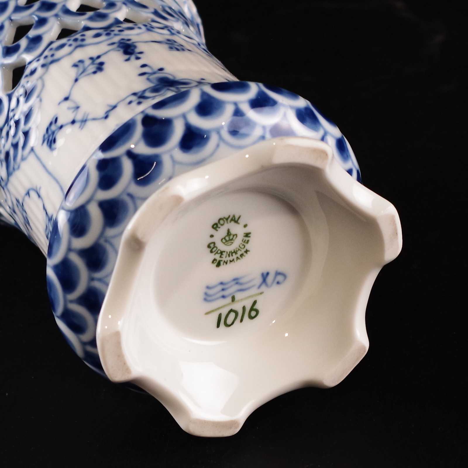 VAS Royal Copenhagen, Danmark. Musselmalet, 1/1016. H:11,5cm D:8cm.
