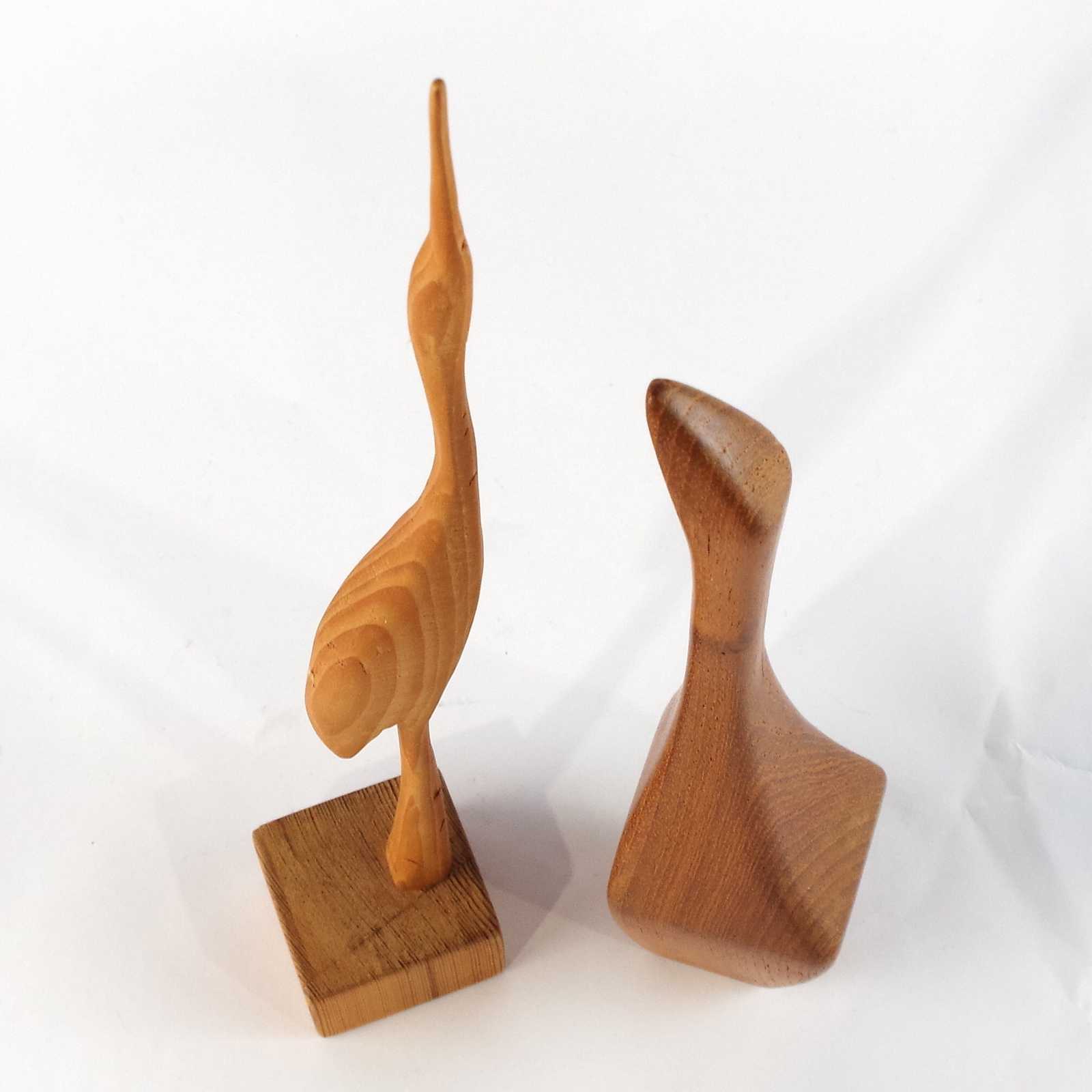TRÄSKULPTURER, 2st, teak/furu, retro. H: 31,5cm högsta.