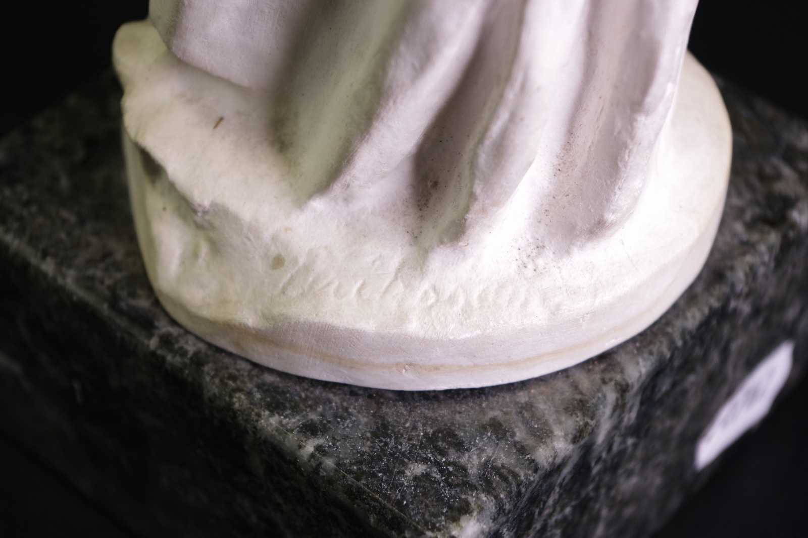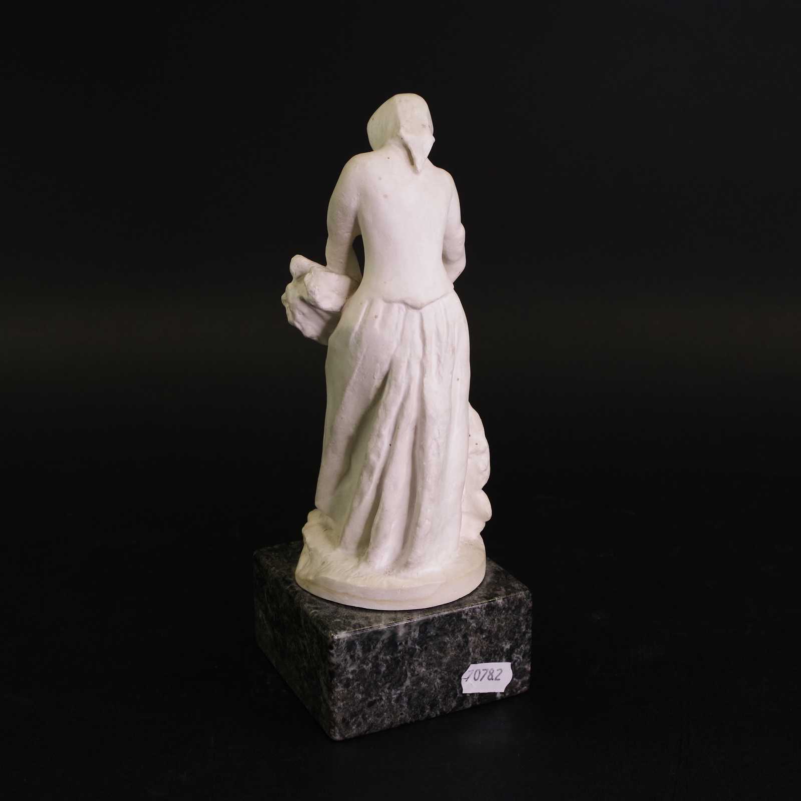 SKULPTUR i gips på sockel av kolmårdsmarmor Christian Ericsson "Kärvbinderskan" H:22 cm