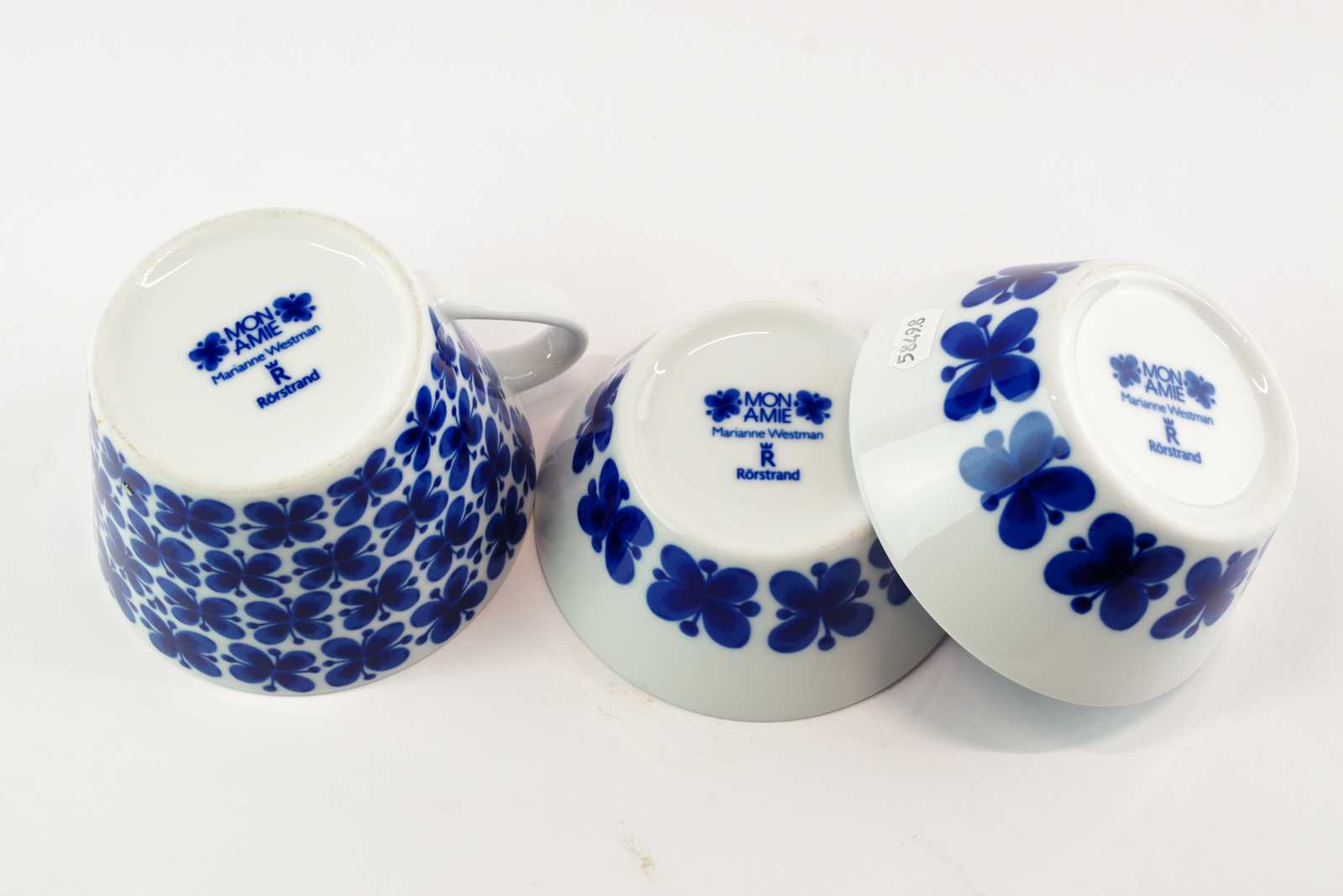 SKÅLAR & TEKOPP H:8 cm D:12 cm Rörstrand "Mon Amie" (nagg i en skål,se bild)