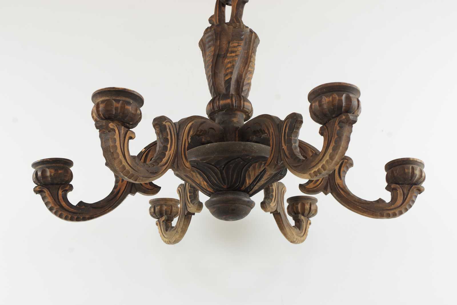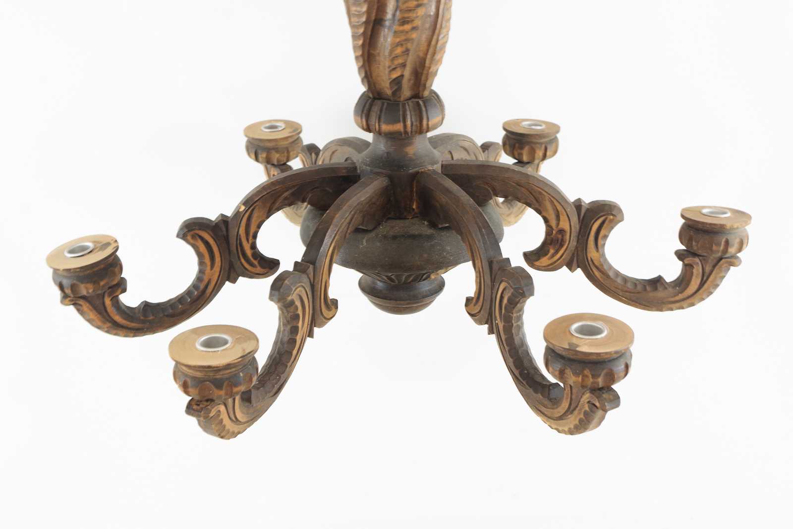 TAKKRONA skuren i trä, 6 armar för levande ljus. D:68cm H:50cm exklusive upphängningskedja
