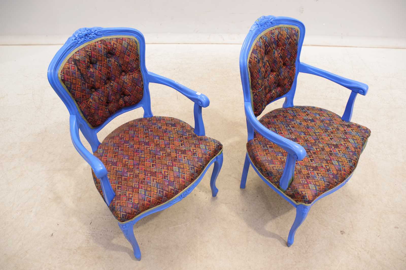 KARMSTOLAR ett par, rokokostil, bemålade.