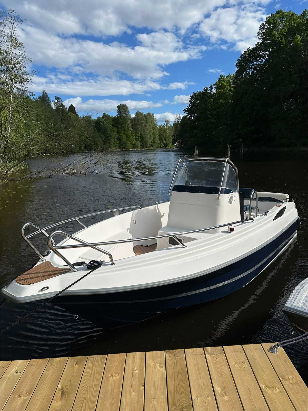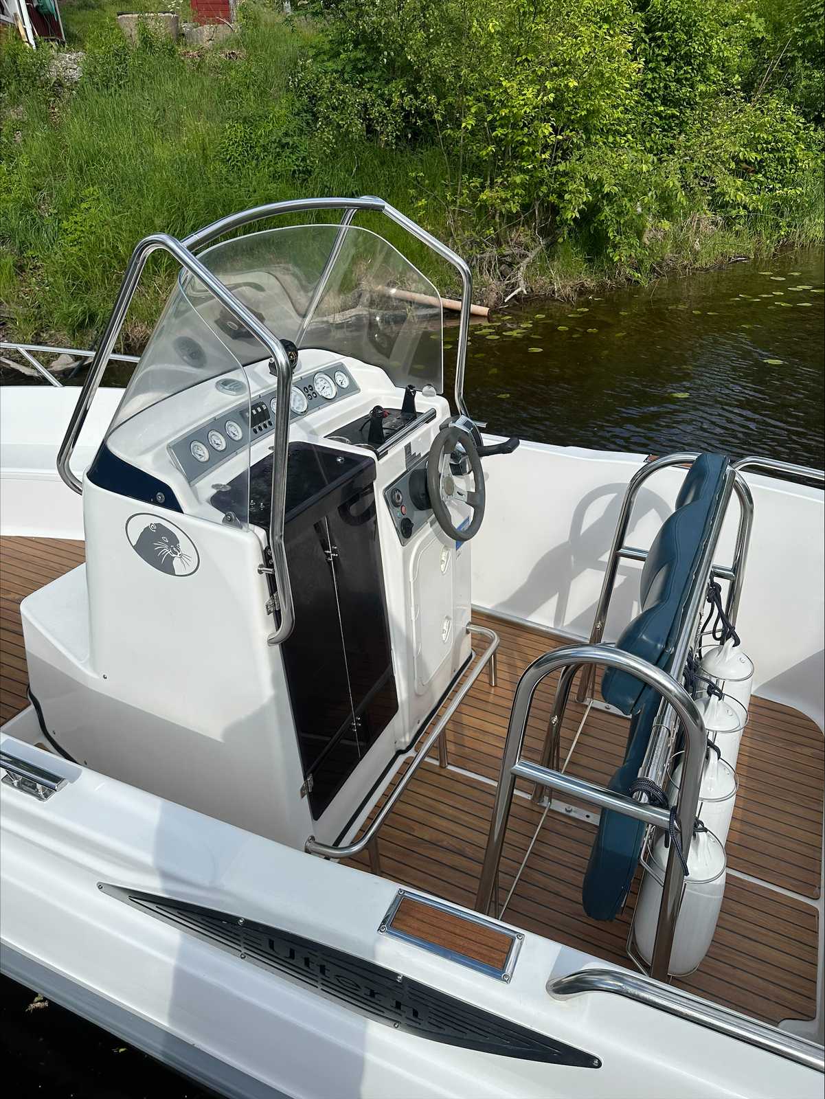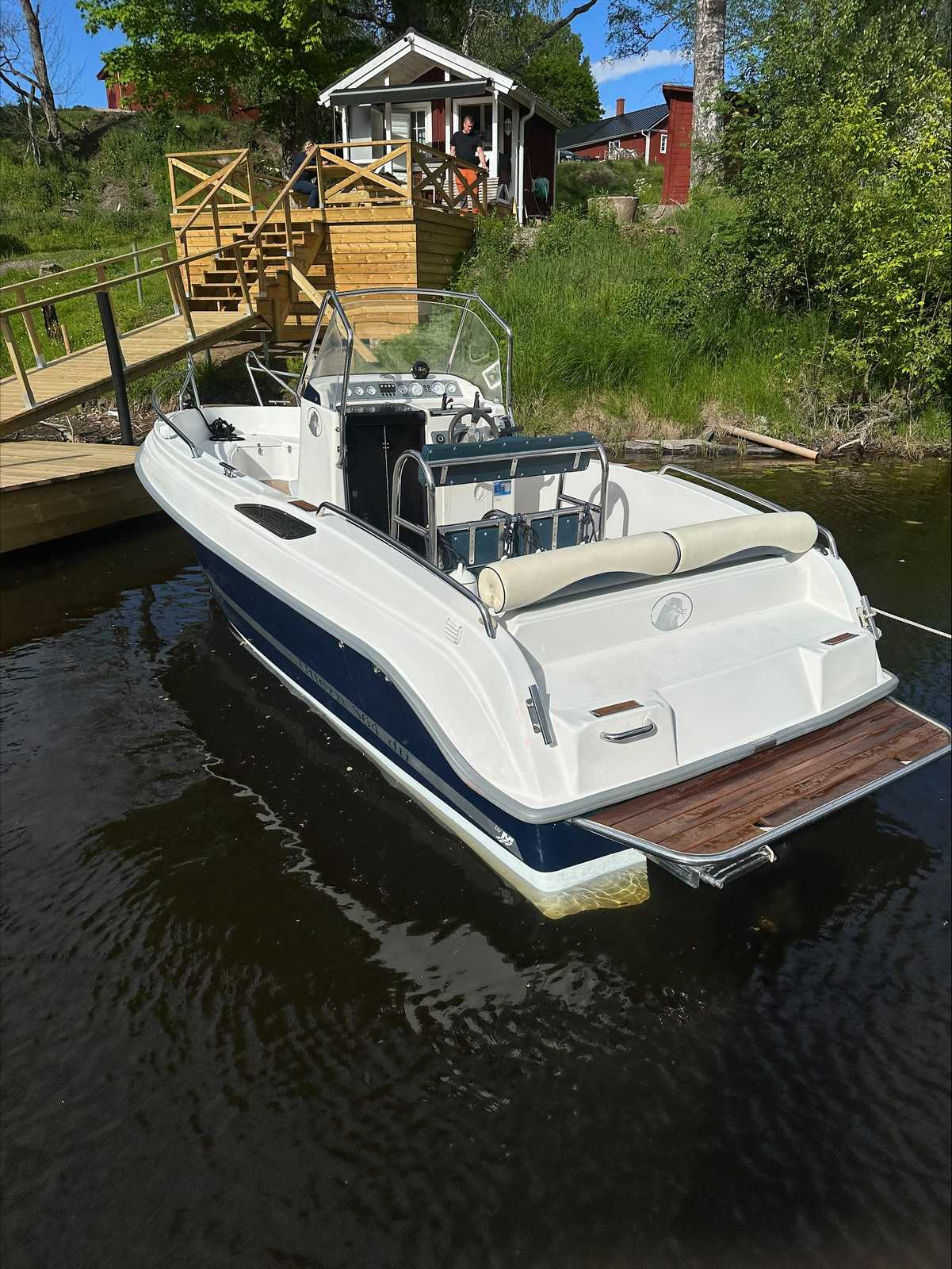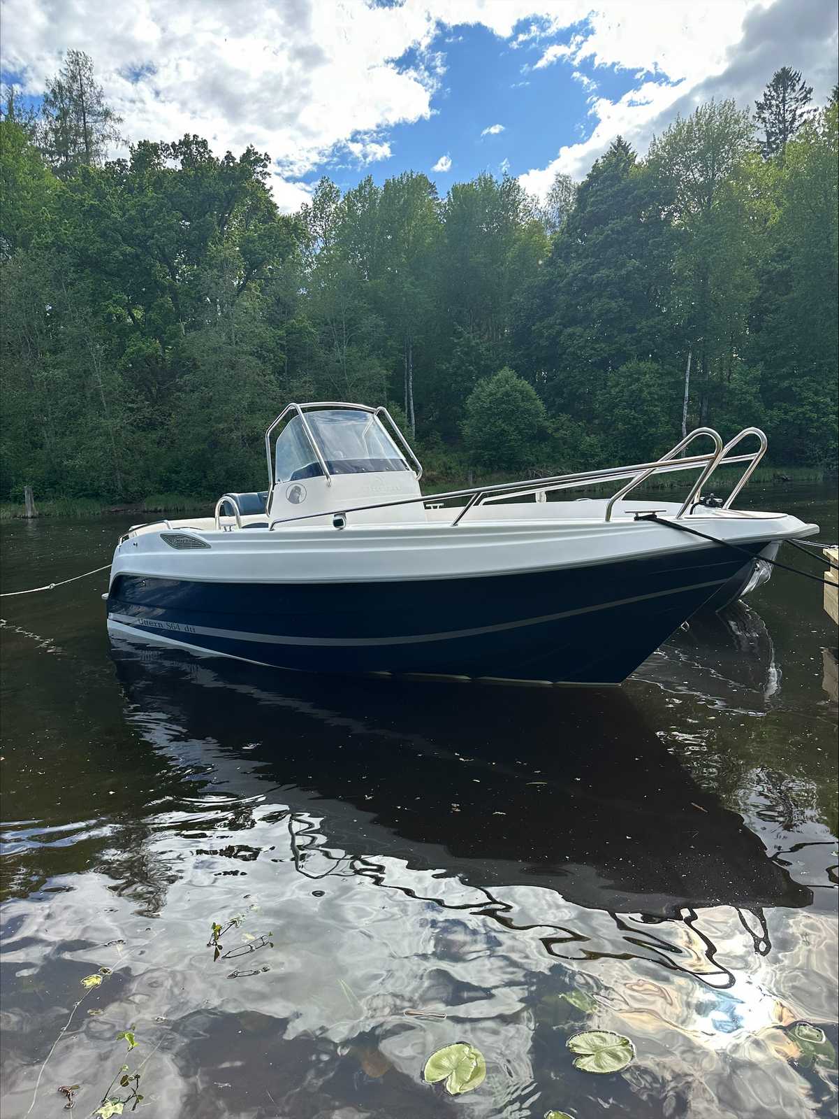 Utrustning: Garmin 721xs plotter+ekolod. Stereo. 12v uttag. 2 sovplatser. Självläns. Badbrygga. Badstege. Hamnkapell. Brandsläckare. Ankare. Fendrar. Båten är Nypolerad. Bottenmålad. Teaklaminat helt nytt. Ny servad med olja filter bränslefilter samt bytt olja i drevet och alla remmar är bytta och impeller.